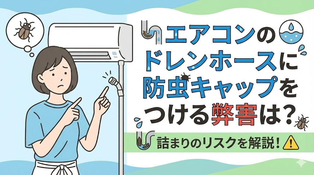 エアコンの排水ホースから虫が入ってくるのは、想像するだけで嫌なものですね。そこで役立つのが防虫キャップです。しかし、よかれと思ってつけたキャップが原因で、エ... -