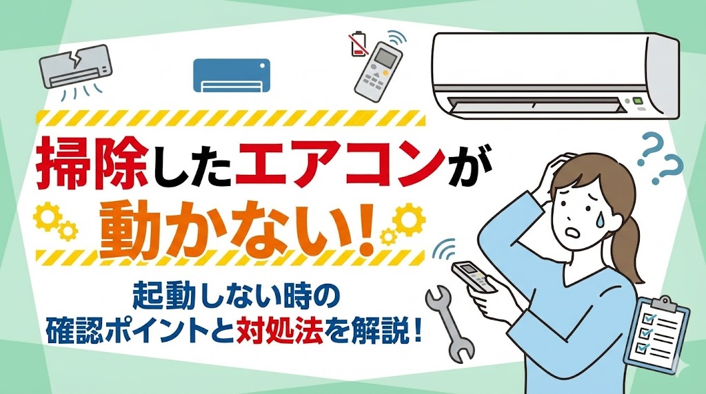 エアコン掃除を終えて、いざスイッチを入れたのに動かないと焦りますよね。せっかく綺麗にしたのに「壊してしまったかも」と不安になるのは当然です。この記事では、掃... -