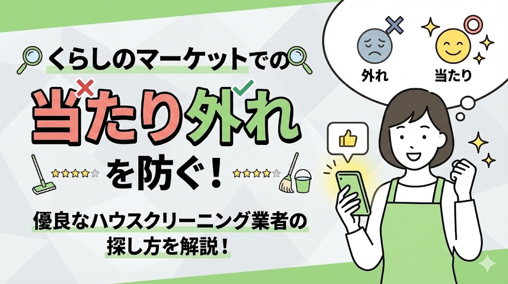 くらしのマーケットでハウスクリーニングを頼みたいけれど、業者の選び方に迷っていませんか。安さだけで選ぶと、汚れが落ちきらなかったり接客が怖かったりと、「当た... -