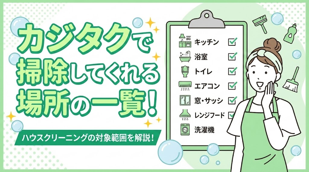 イオングループが運営するカジタクは、面倒な見積り訪問がない便利なサービスです。しかし、いざ頼もうとすると「カジタクで掃除してくれる場所の一覧」がどこまでなの... -
