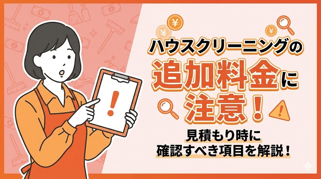 ハウスクリーニングを頼むとき、一番気になるのはお金のことですよね。せっかく見積もりを取ったのに、当日になって追加料金を請求されたら悲しい気持ちになります。「... -