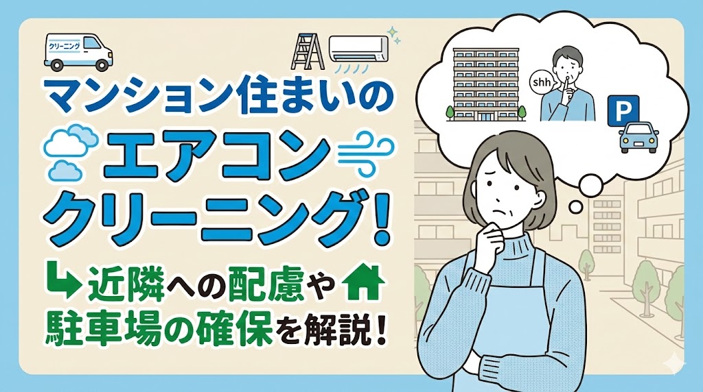 マンションでエアコンクリーニングを頼みたいけれど、隣の部屋への音漏れや作業車の駐車場所が気になっていませんか。集合住宅ならではのルールやマナーがあり、不安を... -