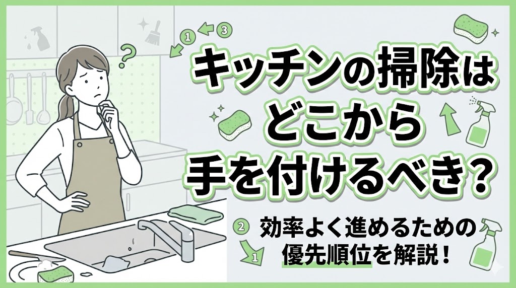 キッチンの掃除はどこから手を付けるべきか迷う人は多いです。換気扇の油汚れやシンクの水垢など、場所によって汚れの種類が違うからです。効率よく進めるための優先順... -