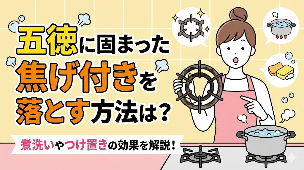 五徳に固まった焦げ付きを落とす方法は?煮洗いやつけ置きの効果を解説!